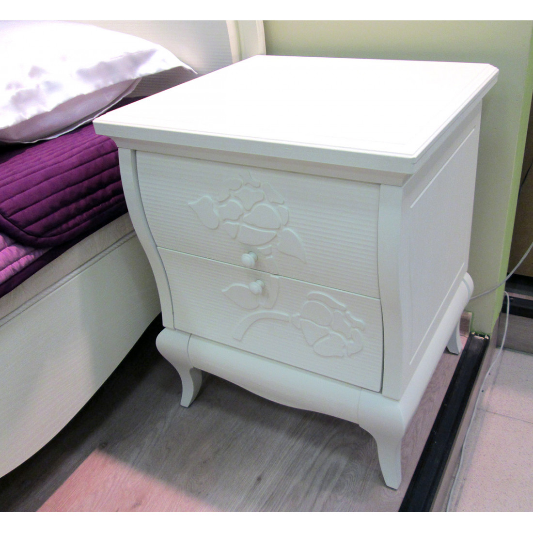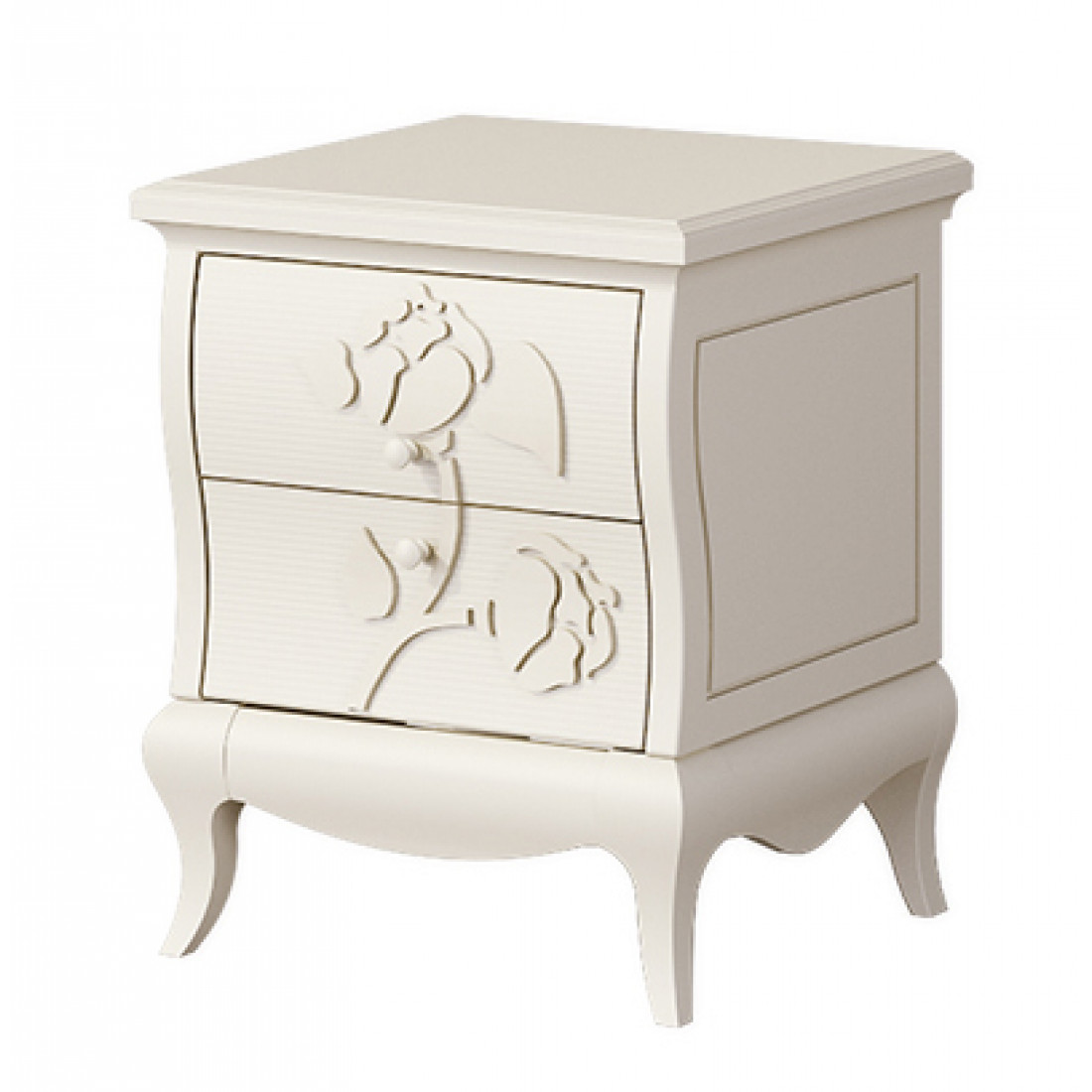 Прикроватная тумба для спальни МН-218-02 серии Астория от Мебель-Неман в стандартной конструкции с двумя выдвижными ящиками смотрится свежо и оригинально, благодаря изящному оформлению. Купить прикроватную тумбу «под старину» стоит в дополнении к кровати – чтобы добавить комфорта в ежедневный отдых.