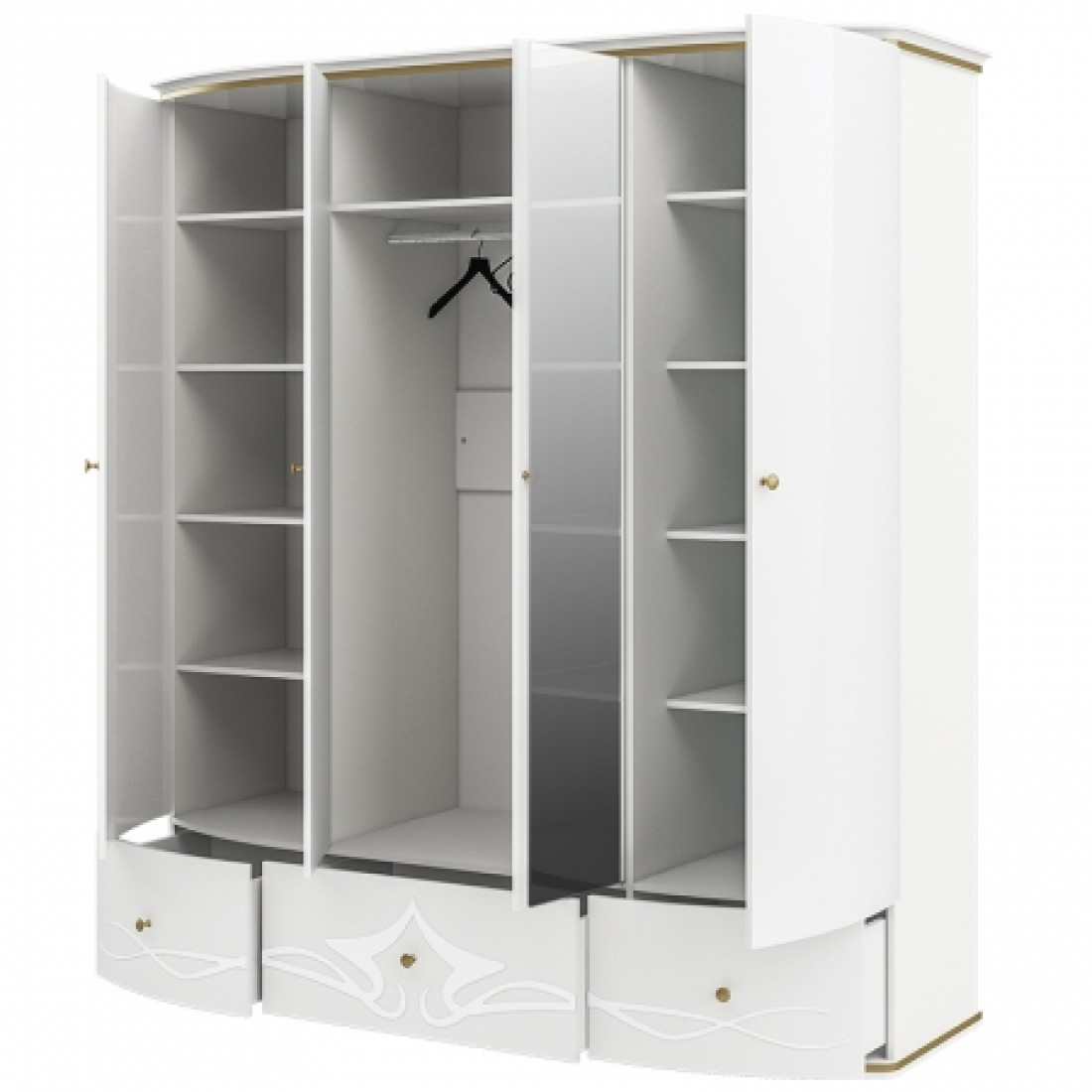 Четырехстворчатый шкаф для одежды с зеркалом и ящиками Богемия Фарфале (Bogemia Farfalle) БМШ1/41 (Fа)