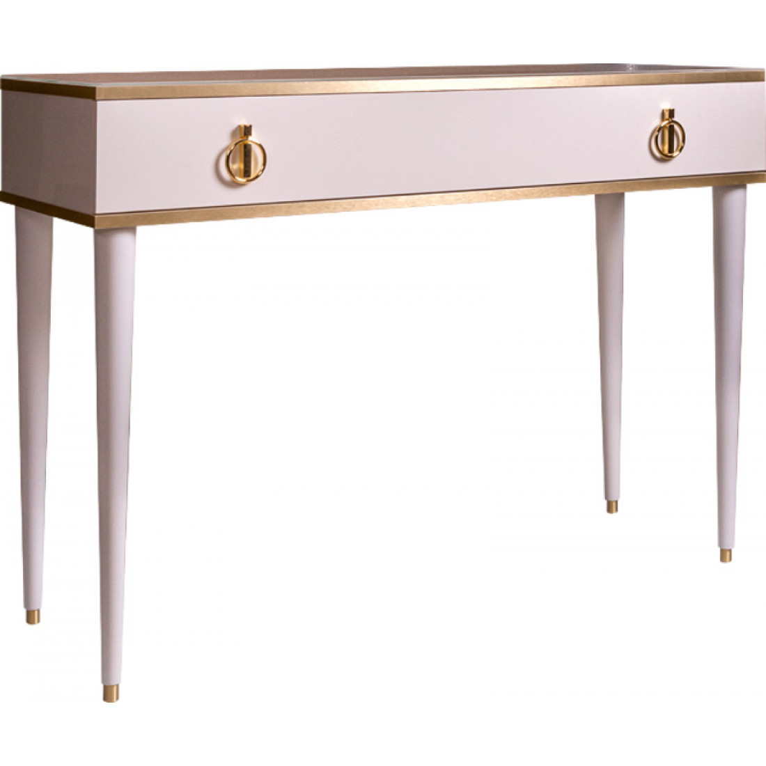 Оригинальным дизайнерским ходом стало решение «поставить»  туалетный столик Rimini на высокие деревянные ножки с латунными или алюминиевыми наконечниками.