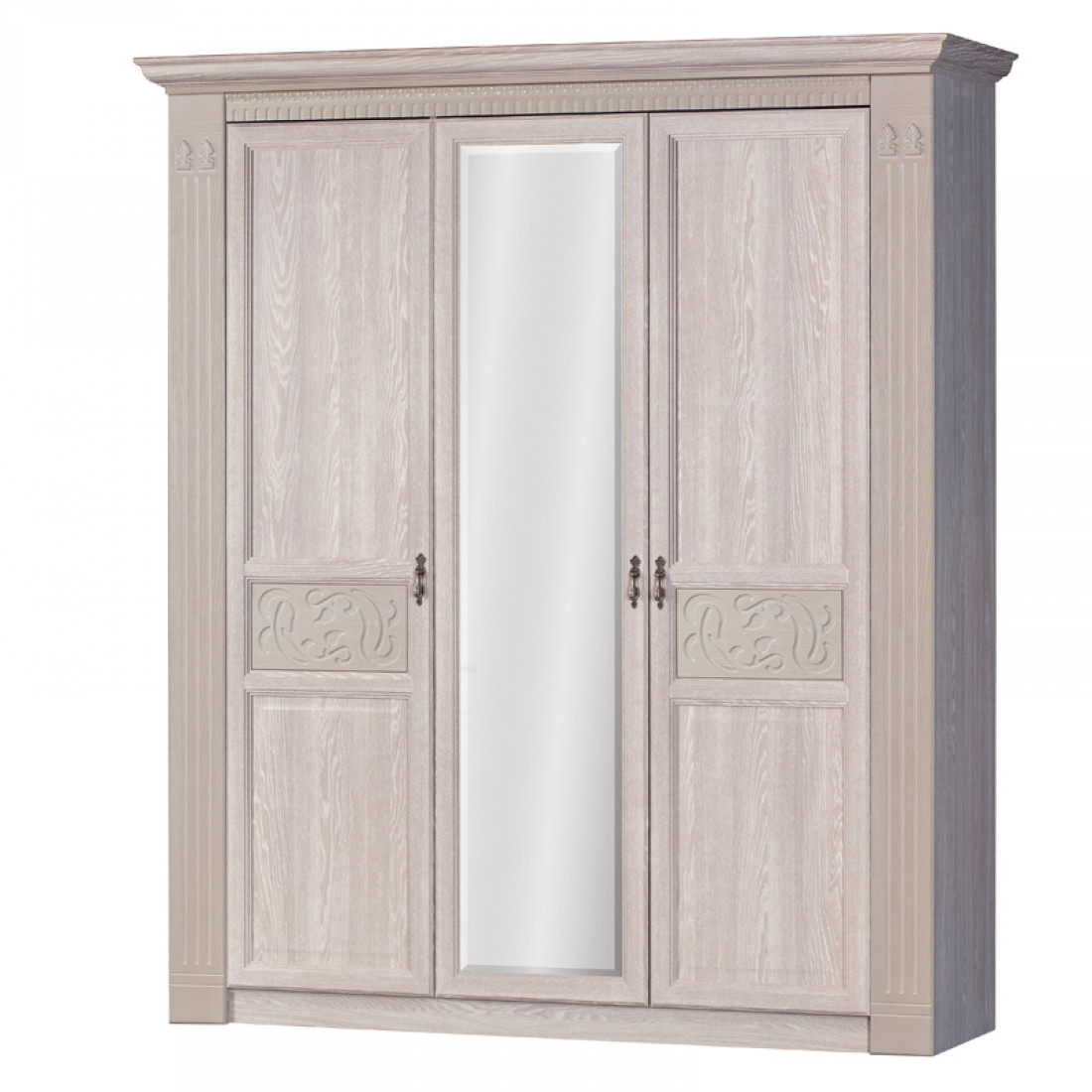 Фасады: МДФ, декор – дуб оксфорд серый, патина, зеркало с фацетом