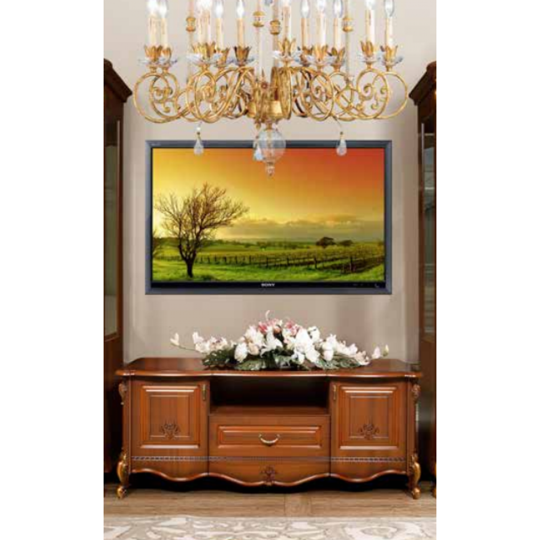 Тумба под телевизор Аллегро (орех) - это тот самый модуль без которого ваша гостиная не сможет справиться. Она имеет вместительные полки которые смогут вместить все необходимые вещи. Ореховый цвет служит показателем богатства и престижа хозяев дома.