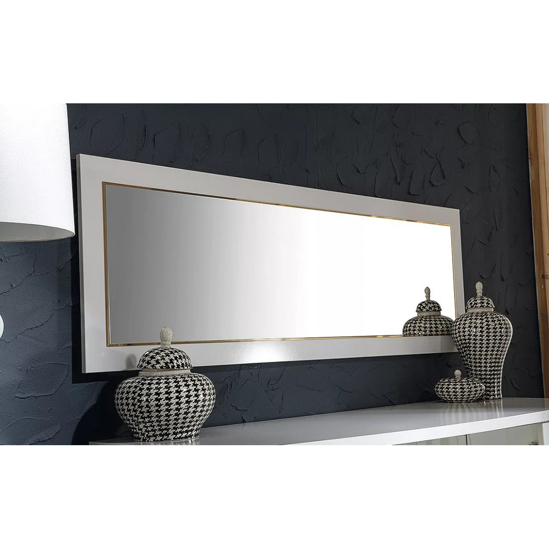 отделка золотым кантом по периметру зеркала;